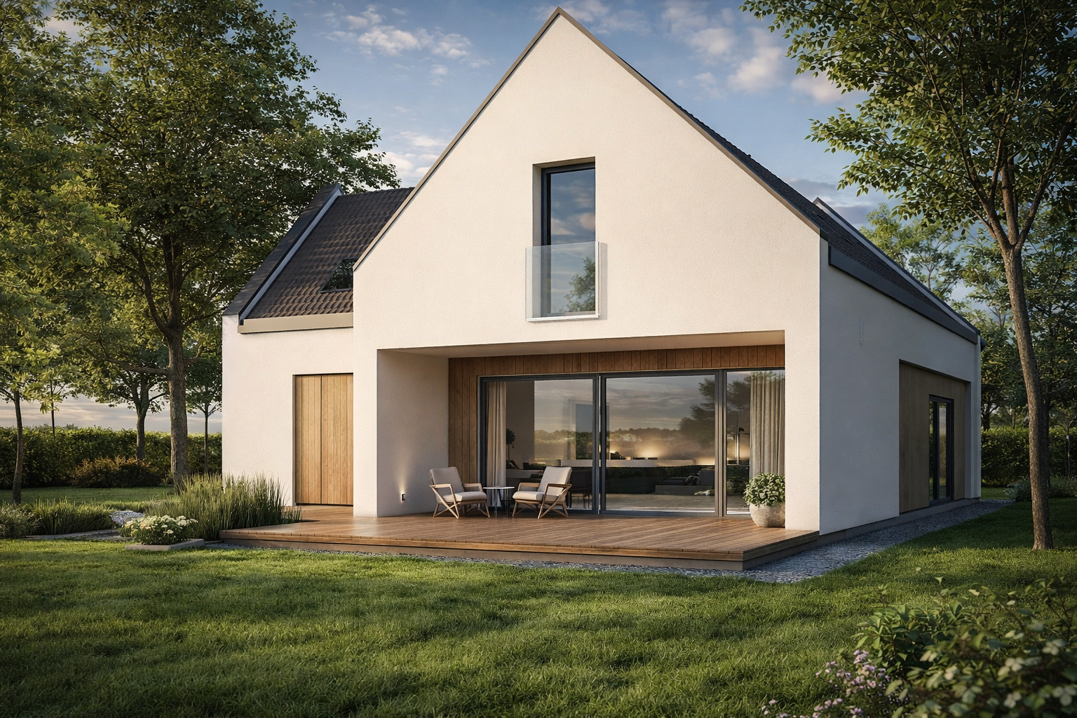 Projekt został zaprojektowany z myślą o rodzinach poszukujących nowoczesnego, funkcjonalnego domu jednorodzinnego, który łączy prostą formę z komfortem codziennego użytkowania.