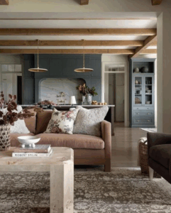 3) Ciepłe neutrale + ziemiste akcenty: beże, taupe, terakota, oliwka